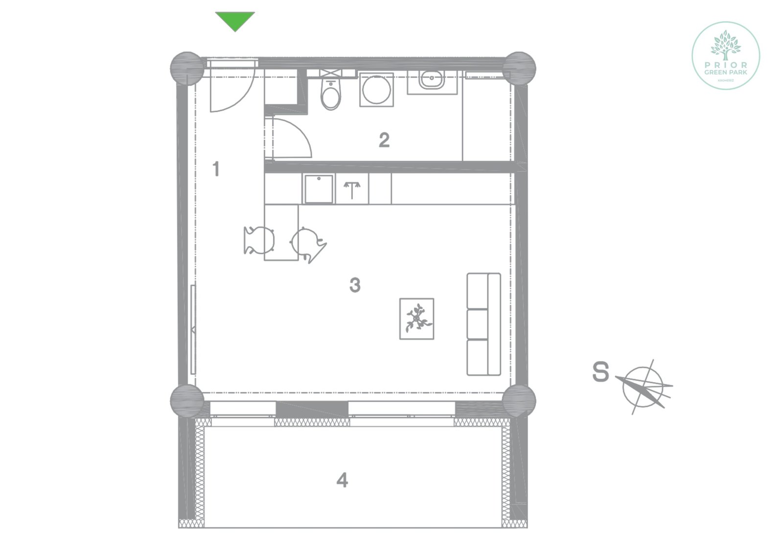 Schéma půdorysu bytu představuje předpokládané dispoziční řešení. Kuchyňské linky, nábytek a interiérové doplňky nejsou předmětem dodávky. Výměry jednotlivých místností jsou pouze orientační. Investor se tímto nevzdává práva na případné úpravy či doplnění marketingového materiálu.