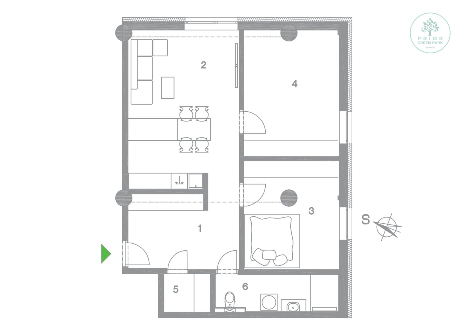 Schéma půdorysu bytu představuje předpokládané dispoziční řešení. Kuchyňské linky, nábytek a interiérové doplňky nejsou předmětem dodávky. Výměry jednotlivých místností jsou pouze orientační. Investor se tímto nevzdává práva na případné úpravy či doplnění marketingového materiálu.